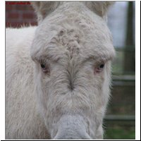 Genetik der Asinara / IvoryeselSchätzungsweise kam das Gen dieser Rasse mit den sardinischen Importtieren nach Amerika . Durch Zufall / Linienzucht wurde ein Ivoryesel geboren. Die Genetik wurde von Interessierten untersucht und man stellte fest, dass es ein rezessives Gen ist. Dabei muß das Elternteil, welches kein Ivory ist, nur das Gen dieser Rasse besitzen. Es muß also einen elfenbeinfarbenen / gelblichen Vorfahren haben. So ist es möglich, diese seltene Eselrasse ohne Inzucht zurück zu züchten ist. RassebeschreibungDer Asinara /Ivoryesel hat rosafarbene Haut, elfenbeinfarbenes / gelbliches