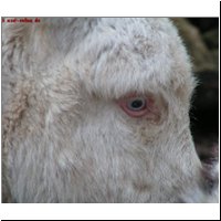 Bei manchen Tieren ist auch ein Kreuz sichtbar. Fohlen werden meistens mit elfenbeinfarbenem / gelblichem Fell geboren, welches später ins Weiße wechselt. Die Schleimhäute an der Nase, um die Augen und im Genitalbereich weisen oft Pigmentierungen auf. Asinara -/ Ivoryesel oder ung. / österr. Barockesel sind keine Albinoesel, man könnte sie eher als flavistische Esel bezeichnen. Flavismus ist eine genetisch bedingte, nicht durch Anpassung (Adaption) entstandene Gelb - bis Goldfärbung als Folge einer Mutation.(Quelle) Die Augenfarbe, meist blau, entsteht durch eine gewisse Anzahl pigmentbildende Zellen, die in unmittelbarem Zusammenhang mit dem Zentralnervensystem liegen. Albinimus ist eine angeborene genetisch bedingte Störung des Tyrosin - Stoffwechsels. Den albinistischen Tieren fehlen die Grundfarbpigmente. Sie sind weiß bzw. farblos einschließlich der Augen. Da auch keine Irisfärbung in den Augen vorhanden ist, sieht man den roten Augenhintergrund. (Quelle) |